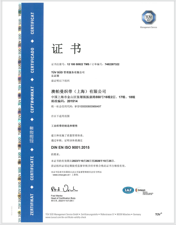 澳帕曼织带(昆山)有限公司是德国E.澳帕曼在中国设立的第一家全资子公司。